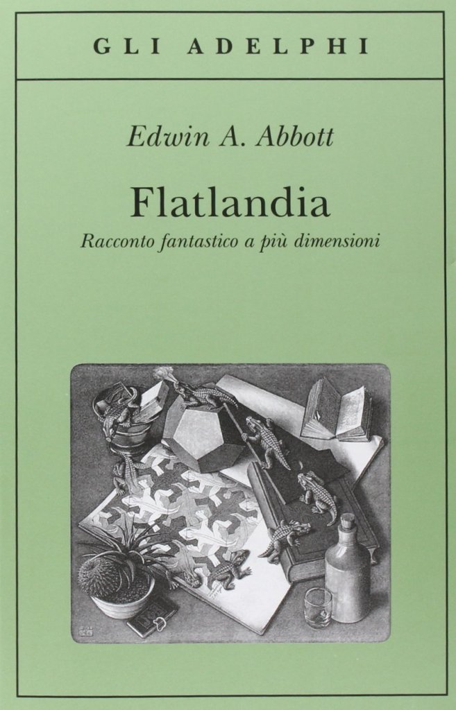 Flatlandia è un mondo dove esistono solo due dimensioni: gli abitanti sono figure piane, come triangoli, quadrati, pentagoni e poligoni vari. Le “persone” con più lati sono le più importanti, fino ad arrivare ai mitici Cerchi, mentre gli Irregolari sono malvisti da tutti e hanno pochissimi diritti. Il narratore è un Quadrato, che un giorno però viene alla conoscenza di altri mondi: la Pointlandia, la Linelandia, ma soprattutto la Spacelandia, dove esistono tre dimensioni.
